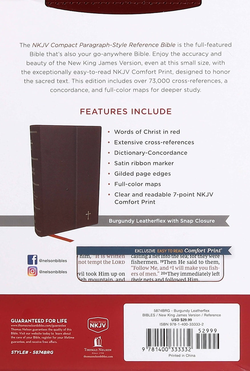 B NKJV COMPACT PARAGRAPH-STYLE REFERENCE BIBLE BURGUNDY (RED LETTER EDITION)