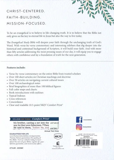 The Evangelical Study Bible will rejuvenate your faith through the unchanging truth of the gospel. With verse-by-verse commentary and interesting sidebars that dig deeper into the historical and contextual background of Scripture, it will help you grow in your understanding and appreciation of the life-changing truths of the Christian faith.