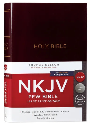 The New King James Bible is one of the best-selling and most-trusted modern English translations. Millions of readers around the world enjoy the beauty of the NKJV, the ease of reading the Bible in today's English, and the accuracy of the translation. The Thomas Nelson NKJV Large Print Pew Bible is a trusted and durable Bible with an easy-to-read font, making it an excellent choice for use in churches and a variety of worship settings.