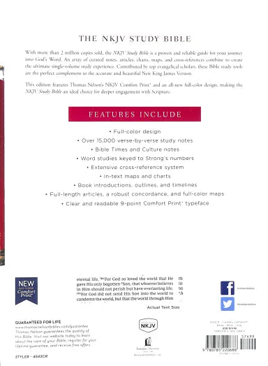 With more than 2 million copies sold, it's no secret that the NKJV Study Bible is a reliable guide for your journey into God's Word. This beautiful full-color Bible provides a complete resource for study, including thousands of notes, articles, extensive cross-references, and features contributed by top evangelical scholars. These multilayered study tools, combined with the accuracy and clarity of the New King James Version, make this Bible a perfect choice to help you understand and deeply engage with Scripture.