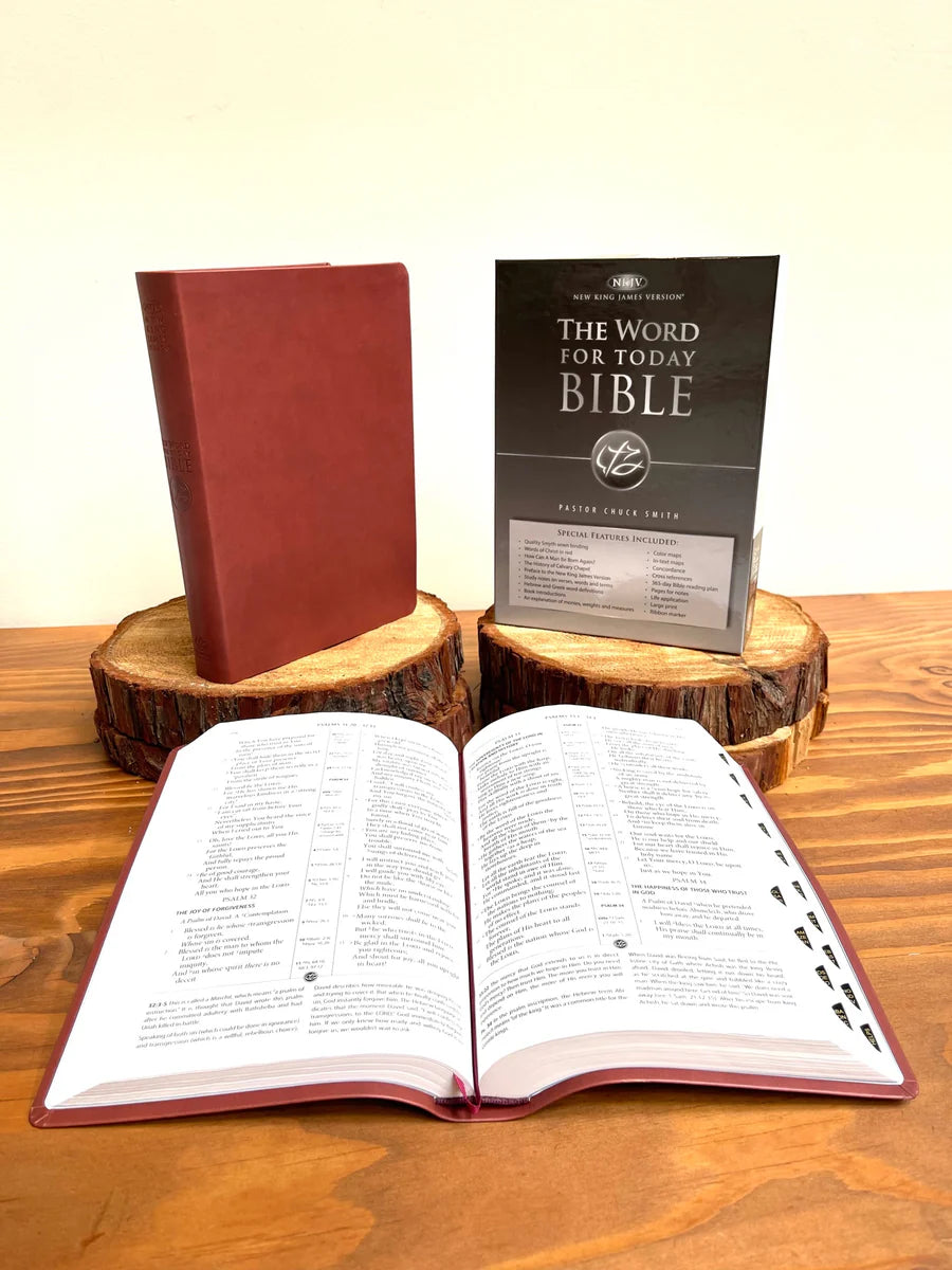 Burgundy Leather Feel Indexed Edition: Gleaning from the feedback from the second printing of The Word For Today Bible with notes by Pastor Chuck, highlighting a clearer understanding of the Scriptures we are excited to announce a third revised edition. In this new edition, you will discover the addition of the How Can A Man Be Born Again book.