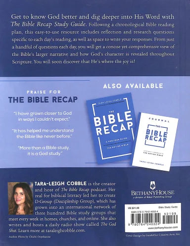 :Get to know God better and dig deeper into His Word with The Bible Recap Study Guide. Following a chronological Bible reading plan, this easy-to-use resource includes reflection and research questions specific to each day's reading, as well as space to write your responses. From just a handful of questions each day, you will get a concise yet comprehensive view of the Bible's larger narrative and how God's character is revealed throughout Scripture. You will soon discover that He's where the joy is!