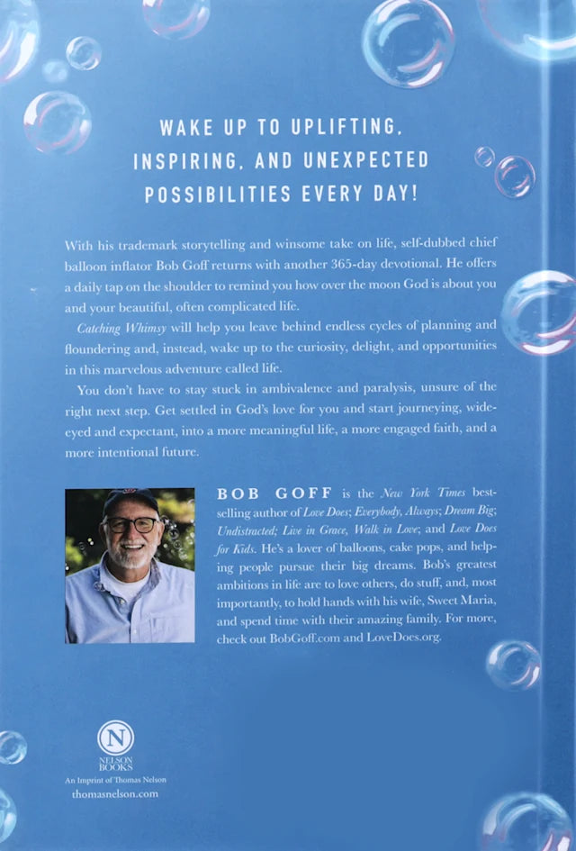Beloved bestselling author Bob Goff takes you on a yearlong journey into the uplifting, inspiring, and unexpected possibilities waiting for you every day. With his trademark storytelling and winsome take on life, Bob returns with Catching Whimsy, a 365-day devotional where he offers you a daily tap on the shoulder to remind you how over the moon God is about you and your beautiful, often complicated life.