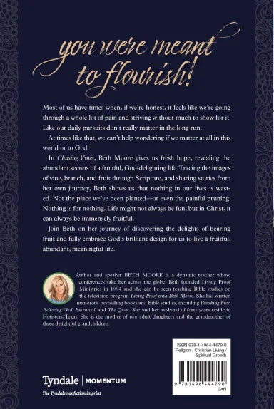 Join bestselling author Beth Moore in her life-changing quest of vine-chasing-and learn how everything changes when you discover the true meaning of a fruitful, God-pleasing, meaning-filled life. Most of us have times when, if we are honest, we'd admit to feeling like our lives are embarrassingly small and insignificant. Times when it seems like we're going through a whole lot of pain and striving without much to show for it. Like our daily pursuits don't really matter in the long run.