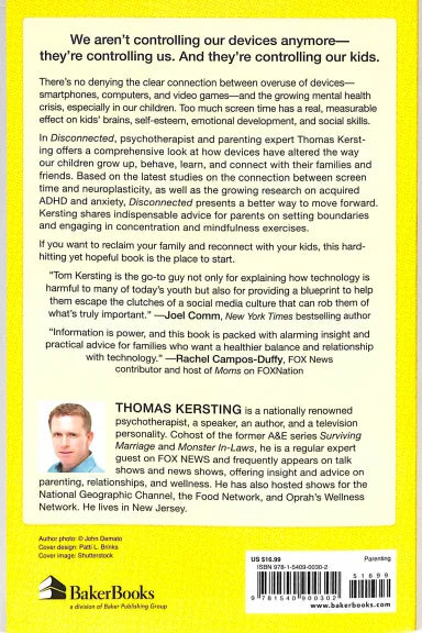 In Disconnected, psychotherapist and parenting expert Thomas Kersting offers a comprehensive look at how devices have altered the way our children grow up, behave, learn, and connect with their families and friends. Based on the latest studies on the connection between screen time and neuroplasticity, as well as the growing research on acquired ADHD and anxiety, Disconnected presents a better way to move forward. Kersting shares indispensable advice for parents on setting boundaries and engaging in concentration and mindfulness exercises.
