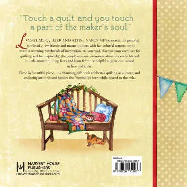 Nancy Mink loves quilts. She designs them, sews them, paints them, and now writes about them. In this beautifully illustrated gift book, Nancy encourages readers to pick up a needle, take a stitch, and discover a love both for the craft and the friends that gather to enjoy it. Woven through the pages are personal stories about devoted quilters from across the country, intriguing and little-known historic facts about quilting, and colorful watercolors of many different quilt designs.