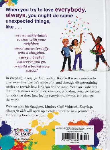 :If you loved Bob Goff's New York Times bestselling book Everybody, Always, you'll enjoy sharing the same beautiful message of loving without inhibition, insecurity, or restriction with your family in the children's edition. Everybody, Always for Kids will get your children excited about being themselves, caring for others, and making a difference in the world.