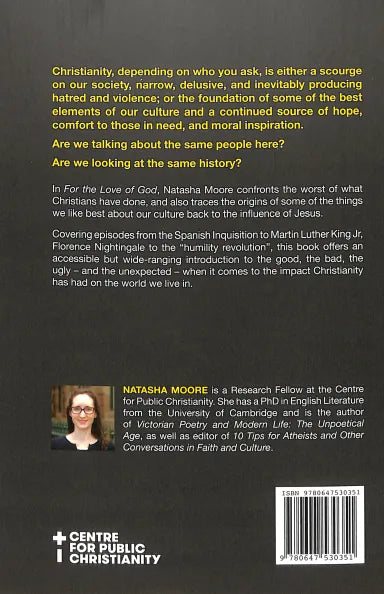 In For the Love of God, Natasha Moore confronts the worst of what Christians have done, and also traces the origins of some of the things we like best about our culture back to the influence of Jesus.