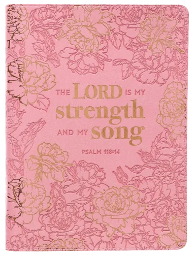 Rejoice in the goodness of God as you pour out your gratitude in the My Strength and My Song Pink Faux Leather Classic Journal with Zippered Closure. This gorgeous journal conveys a beautiful message of God's sustaining power.