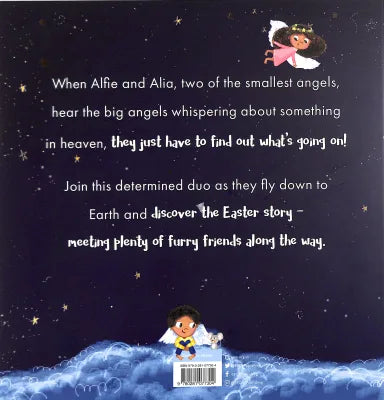 'Have you heard ...?' 'Did you know ...?' 'Could it be true ...?' 'Surely, no!' Something was happening in heaven. Alfie and Alia, two of the smallest angels, listened carefully. What were the big angels whispering about? Alia made a plan. 'Let's fly down to Earth and find out!' Join Alfie and Alia as they discover the Easter story, and meet many furry friends along the way!