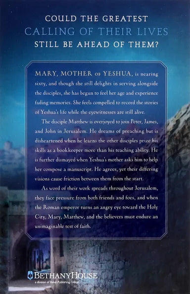 :Disciple Matthew, a former tax collector, is invited to work with Peter, James, and John in Jerusalem. He dreams of preaching and performing miracles like his fellow apostles, but he finds his dreams postponed because of a request from Yeshua's mother. Well aware of the passing years, Mary asks Matthew to help her record the stories of Yeshua while the eyewitnesses are still alive. Reluctantly, he agrees, though the longer he and Mary work together, the more difficult their task becomes. Not only are they pressured by opposition from friends and foes alike, but Gaius Caesar, better known as Caligula, is determined to raise a statue of himself in the Holy Temple, even if it means killing every man in Israel. As Matthew works to save his people, Mary encourages him to come to terms with issues from his past. When they finally near the completion of their project, Matthew realizes that the job he reluctantly accepted might be his God-given destiny.