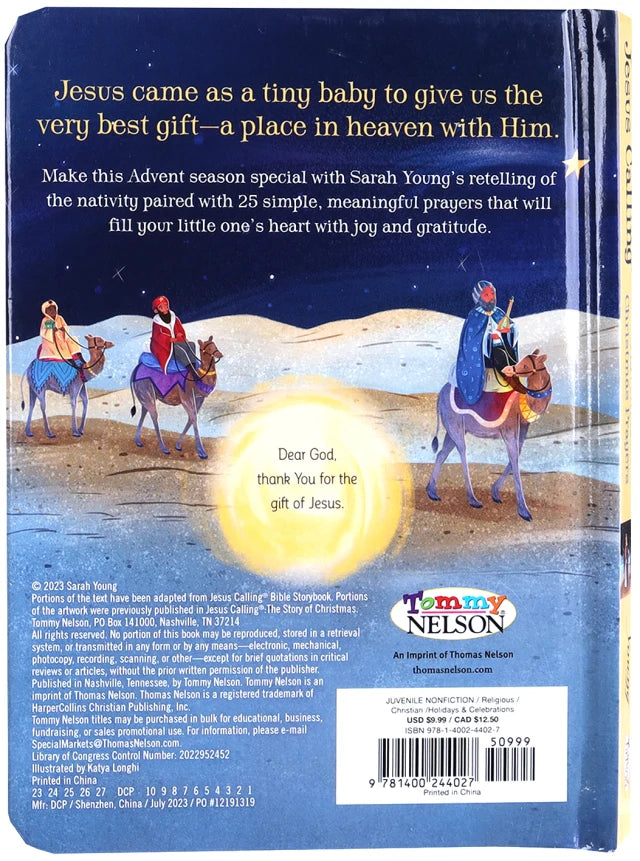 Celebrate Advent and Christmas with this read-aloud children's prayer book by Sarah Young, bestselling author of Jesus Calling, Jesus Always, and Jesus Listens. This board book includes an Advent calendar of 25 prayers alongside a simple retelling of the Christmas story that invites the hope of Jesus and the joy of the nativity into little hearts.