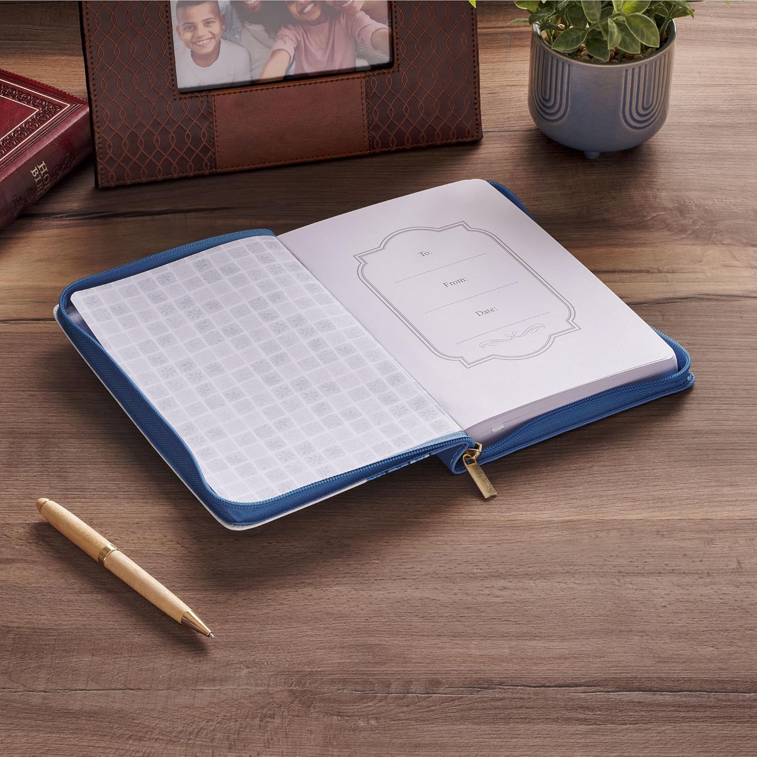 Embrace the beauty of God's love with the Love Blue Floral Tile Faux Leather Journal with Zipper Closure. This uniquely designed journal is the ideal companion for daily quiet time and is great for jotting down prayers, Scripture reflections, or insights during Bible study.