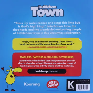"Bless my socks! Dance and sing! This little bub is God's high king!" Join Brown Cow, the shepherds and the wonderful welcoming people of Bethlehem town in this Christmas celebration.