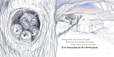 From sleepy owls and stretching cats to baa-ing sheep and chirping birds, Morning in the Barnyard takes babies and toddlers on a fun, rhyming journey through the sights and sounds of a brand-new day on the farm. This adorable keepsake will entertain young animal lovers while gently forming their faith.