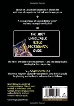 “If you’ve ever wondered whether it is possible to make the Bible mean what it never meant... wonder no more! But if you invest some `minniths’, you’ll discover things about `heman’ that may have more to do with `caesar’ than your getting the `gaash’ treatment (now you’ll need to buy the book!). “And if you die laughing, they’ll give you your money back (upon personal application!)” -- Steve Brady, Principal, Moorlands College