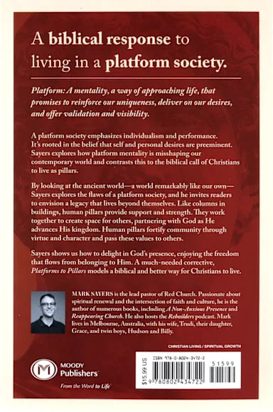 A platform society emphasizes individualism and performance. It's rooted in the belief that self and personal desires are preeminent. In Platforms to Pillars, cultural expert Mark Sayers explores how platform mentality is misshaping our contemporary world and contrasts this to the biblical call of Christians to live as pillars.