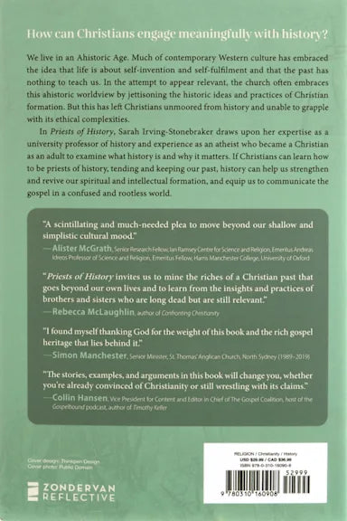 In Priests of History, Sarah Irving-Stonebraker draws upon her expertise, and her experience as an atheist who has become a Christian, to examine what history is and why it matters. If Christians can learn how to be "priests of history," tending and keeping our past, history can help us strengthen and revive our spiritual and intellectual formation and equip us to communicate the gospel in a confused and rootless world.