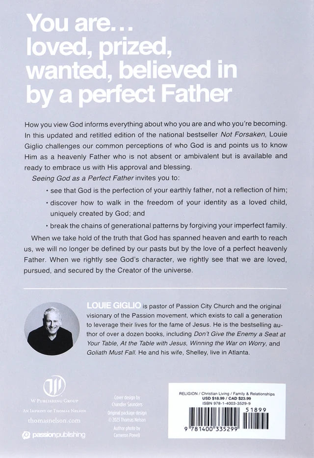 :You are chosen, loved, prized, wanted, and believed in by a perfect Father. In Seeing God as a Perfect Father, Louie Giglio invites us to experience God in a life-changing way: as a perfect Father who wants you to live under the waterfall of His blessing.