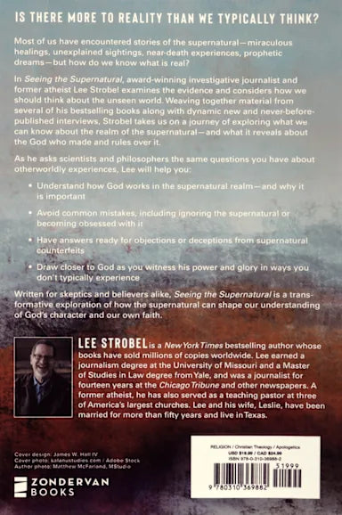 As the bestselling author of the popular Case For series, which has sold millions of copies, Lee Strobel has interviewed some of the most brilliant scientists and philosophical thinkers in the world on topics of apologetics and faith. In Seeing the Supernatural, Lee weaves together his best material from several previous books with dynamic new and never-published interviews to investigate what the Bible really teaches about the unseen world.