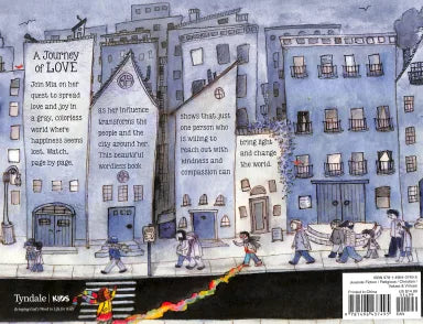 Every morning, colorful Mia walks out into a dreary, dark city. The cityscape and the people are monochromatic, and the crowd walks with their heads down as if they have no hope-until one little boy notices Mia and the light and color she brings into the otherwise drab and colorless city. The boy eventually crosses the street to walk with Mia and join in her silent mission to spread life and light, and he too becomes full of color.