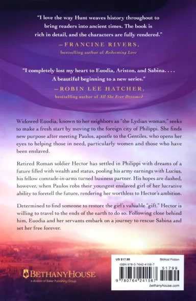 Widowed Euodia wants to make a fresh start by moving to the foreign city of Philippi. She finds new purpose after meeting Paulos, apostle to the Gentiles, who opens her eyes to helping those in need, particularly women and those who have been enslaved.