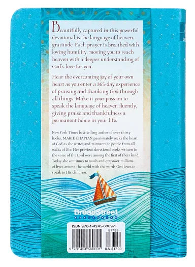 :Beautifully captured in this powerful devotional is the language of heaven- gratitude. Each prayer is breathed with loving humility, moving you to reach heaven with a deeper understanding of God's love for you.