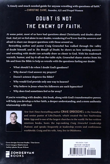 Bestselling author and pastor Craig Groeschel has walked through the valley of doubt himself, and in The Benefit of Doubt, he shows us how asking questions, seeking answers, and wrestling with doubt can actually draw us closer to God. With his trademark humor, warmth, and lay-it-all-on-the-table style, Groeschel shares stories from his own life as well as the Bible to help us wrestle with — and find helpful answers to — the questions fueling our doubt: