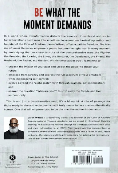 The Man the Moment Demands will empower you to become the right man in every moment by embodying the ten characteristics of the comprehensive man: the Fighter, the Provider, the Leader, the Lover, the Nurturer, the Gentleman, the Friend, the Husband, the Father, and the Son.