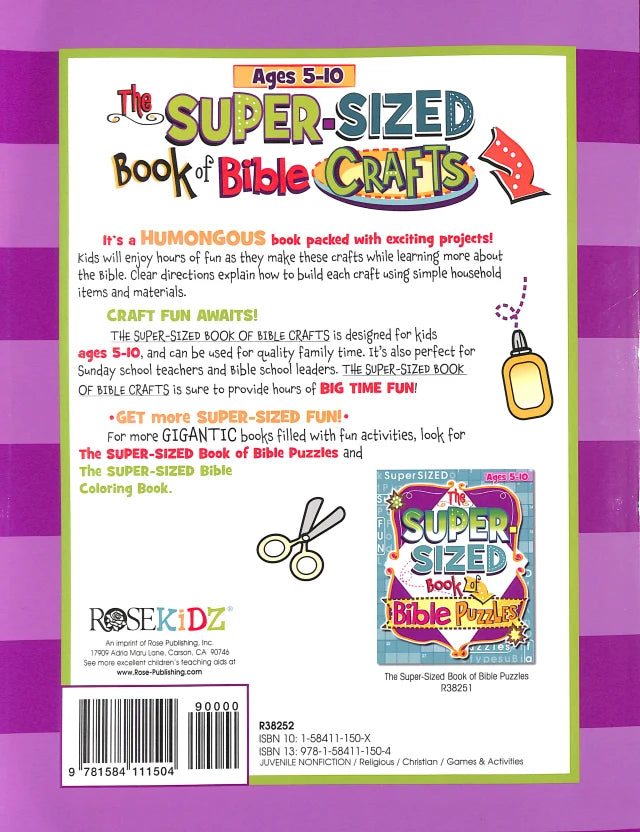 The SUPER-SIZED BOOK of BIBLE CRAFTS is designed for kids ages 5-10, and can be used for quality family time. It's also perfect for Sunday school teachers and Bible school leaders.