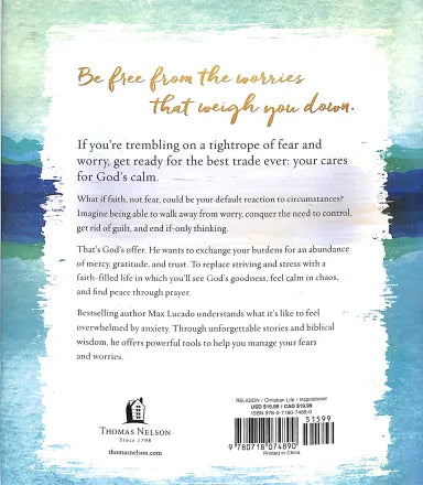 In a swirling, chaotic world, even believers sometimes lose sight of the peace God plans for His children. Max Lucado invites you to enter this peace, offering practical ways to set aside anxiety and focus on God, on Scripture, and on the calm only He can bring to your soul. This beautifully designed gift book features stunning full-colour photography. Publisher Description :**In a swirling, chaotic world, even believers sometimes lose sight of the peace God plans for His children. *Trade Your Cares for Calm* by bestselling author Max Lucado invites you to live in God's perfect peace, offering practical ways to set aside anxiety and focus on God, on Scripture, and on the calm only He can bring to your soul.** Max's comforting, biblical wisdom will help you realize God's peace and provision in your life and equip you to overcome worry and anxiety. *Trade Your Cares for Calm* will gently guide you to face your fears, reflect on God's goodness, end "if-only" thinking, live with gratitude, and embrace the peace God offers you. Each chapter includes a short opening story and helpful teachings from Max, Scriptures to meditate on, practical help for practicing peace, and guided journaling to help you put a plan in place to change the way you think and live while drawing closer to God. An excellent gift for a friend going through a trial of any kind, for people who tend to be chronic worriers, or for those who are overwhelmed with the busyness of life and want to focus their attention to meditating on Scripture and becoming closer to God, *Trade Your Cares for Calm* will soothe your soul with the peace God promises.