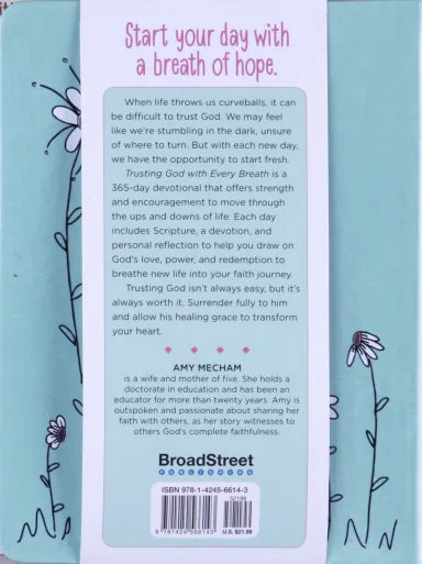 Trusting God with Every Breath is a 365-day devotional that offers strength and encouragement to move through the ups and downs of life. Each day includes Scripture, a devotion, and personal reflection to help you draw on God's love, power, and redemption to breathe new life into your faith journey.