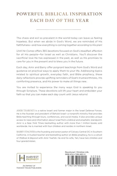 Until He Comes offers 365 devotions focused on God's steadfast affection for all His people—for Israel as well as Christians. You’ll discover the sacrificial love He has expressed in the past, as well as His promises to care for you in the present and to bless you in the future.
